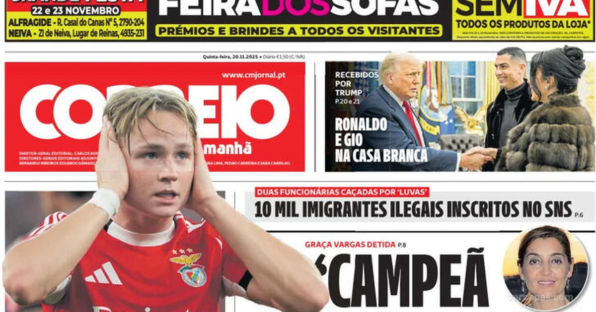 Títulos da capa Correio da Manhã de 20 Novembro 2025