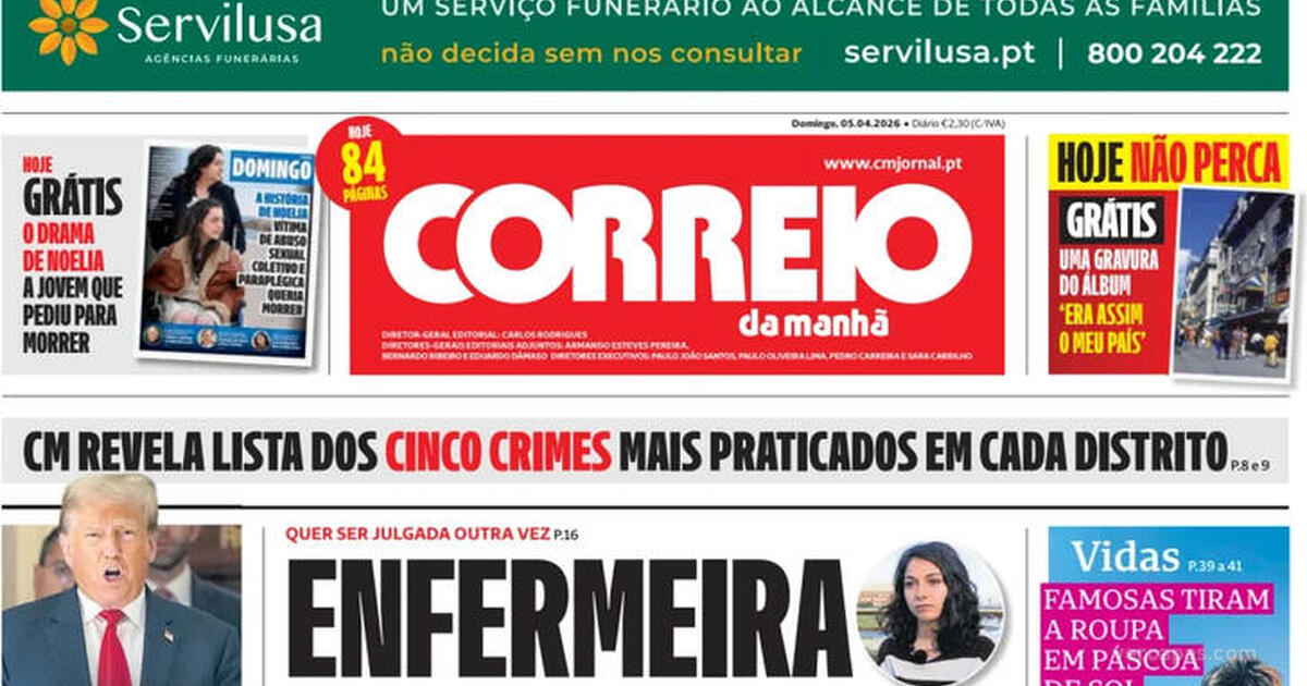 Títulos da capa Correio da Manhã de 5 Abril 2026