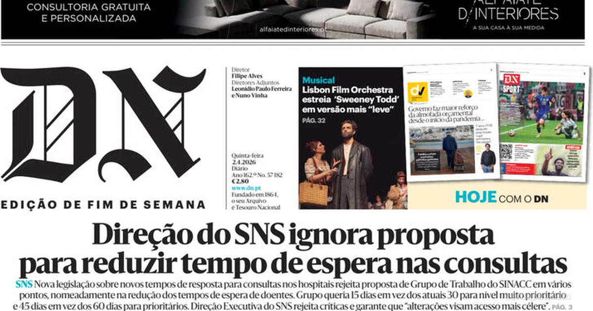 Títulos da capa Diário de Notícias de 2 Abril 2026