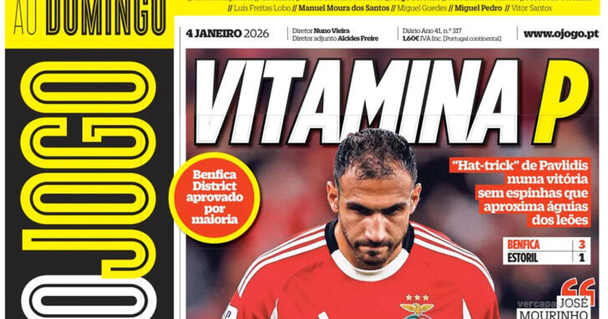 Títulos da capa O Jogo de 4 Janeiro 2026