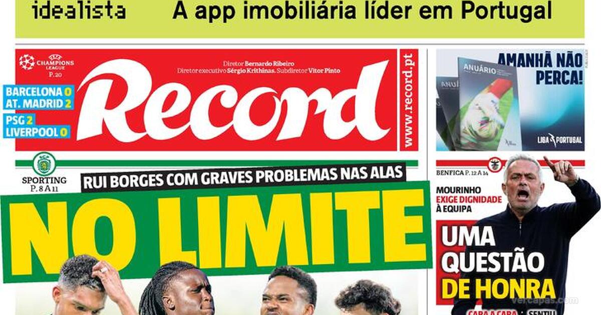 Quinta, 09 de Abril de 2026 - 02:10Rui Borges tem dores de cabeça para refrescar os corredores: Luís Guilherme ficou sem prazo para regressar e pressiona aposta em Pote e Geny, dupla fustigadíssima